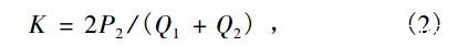 由于该换绳工艺先拆除2根旧绳,留2根旧绳承受提升容器、 平衡尾绳及提升钢丝绳的重力,为保证换绳过程中的提升安全,需要验算安全系数。提升钢丝绳新绳1 = 44 mm,总丝数 S1 = 222换绳前最后一次检测最小直径2 = 41. 1 mm,一个捻距断丝最多为两丝,总丝数S2 = 220; 新绳检验报告显示每根钢丝绳的破断力总和 P1 = 1 770 kN,测算每根旧绳的破断力为: